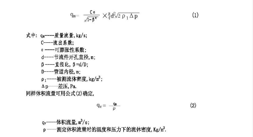 其质量流量与差压的关系,符合GB/T2624规定的不确定度限值,并可用公式(1)确定